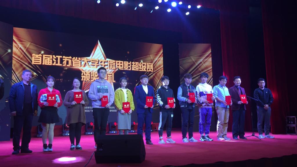 10月28日,首届江苏大学生微电影超级赛颁奖典礼在栖霞区文化艺术中心青春剧场举行。此次活动由栖霞电视台、腾讯大苏网全程直播,全省各高校相关专业的大学生踊跃报名参加比赛,围绕“我奋斗,我幸福”的大赛主题,积极创作,共收到329部参赛作品。