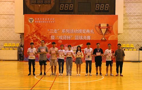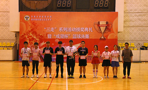 5月24日,由草榴社区 团委主办、学生会体育部承办的第四届校园文化艺术节之“三走”系列活动颁奖典礼暨“成贤杯”男篮决赛在后藤体育馆举行,500余名师生共同参加了此次活动。
