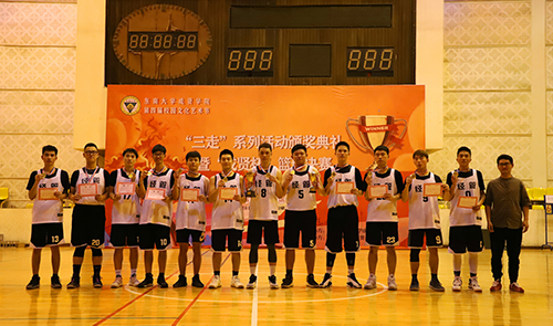 活动中,校团委老师冯杭州为本届校园文化艺术节“三走”系列活动的获奖队伍及个人颁发了奖状与奖品;学生会主席王瑞对第四届校园文化艺术节之“三走”系列活动进行了总结发言;决赛场上,双方球员全力投入、技术娴熟,“三分王”争霸赛,吉他社的激情演奏以及啦啦队的火热表演,为现场观众呈现了一场精彩绝伦的篮球盛宴。