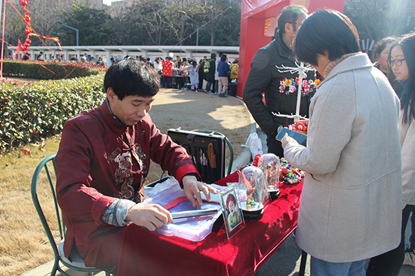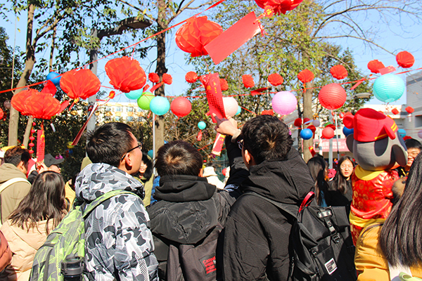 活动现场2000多灯谜高高悬挂、五彩斑斓,师生现场驻足观赏、积极猜谜。游园会现场分为表演、展览和互动三个区域。表演区域,各学生艺术团、跆拳道社、啦啦队精心准备的节目轮番上演,现场不断发出热烈的掌声和尖叫声;展览区域,书法社的书法体验、手工社的手工制作、汉服社的汉服讲解、刀画社的作品展示等引得人头攒动。互动区域,投壶、套圈等传统游戏,糖画、捏泥人等传统民间文化活动,吸引了众多师生的积极参与,让师生在游园中体会活动乐趣、了解传统文化,活动现场气氛热烈、其乐融融。