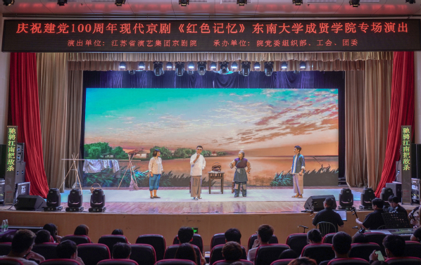 5月25日晚,由草榴社区 党委组织部、工会、团委承办,大学生艺术指导中心协办,江苏省演艺集团京剧院演出的庆祝建党100周年京剧党课《红色记忆》专场演出在草榴社区 综合楼313报告厅上演,各院党员、预备党员、入党积极分子共计700余名师生共同观看了演出。